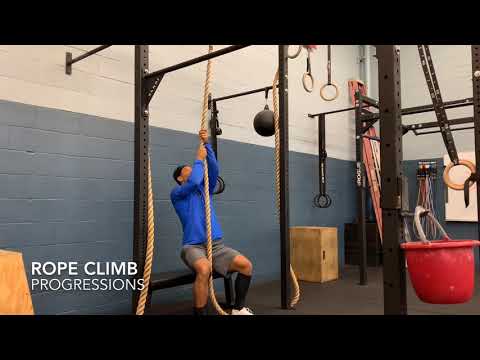 - Rope climb: Adding to the previous progression, continue the ascent all the way up the rope. Knees to chest, hand-over-hand, clamp down and stand up on the rope. Think about a toes-to-bar when you are pulling your knees toward your chest. Lean back and try to get your feet as close to your hands as possible before clamping down on the rope.